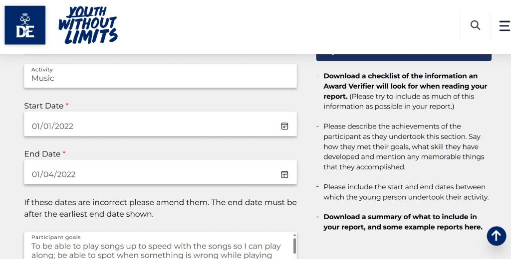They will need your DofE ID number, The Section they are completing and the Award Level you are participating in.