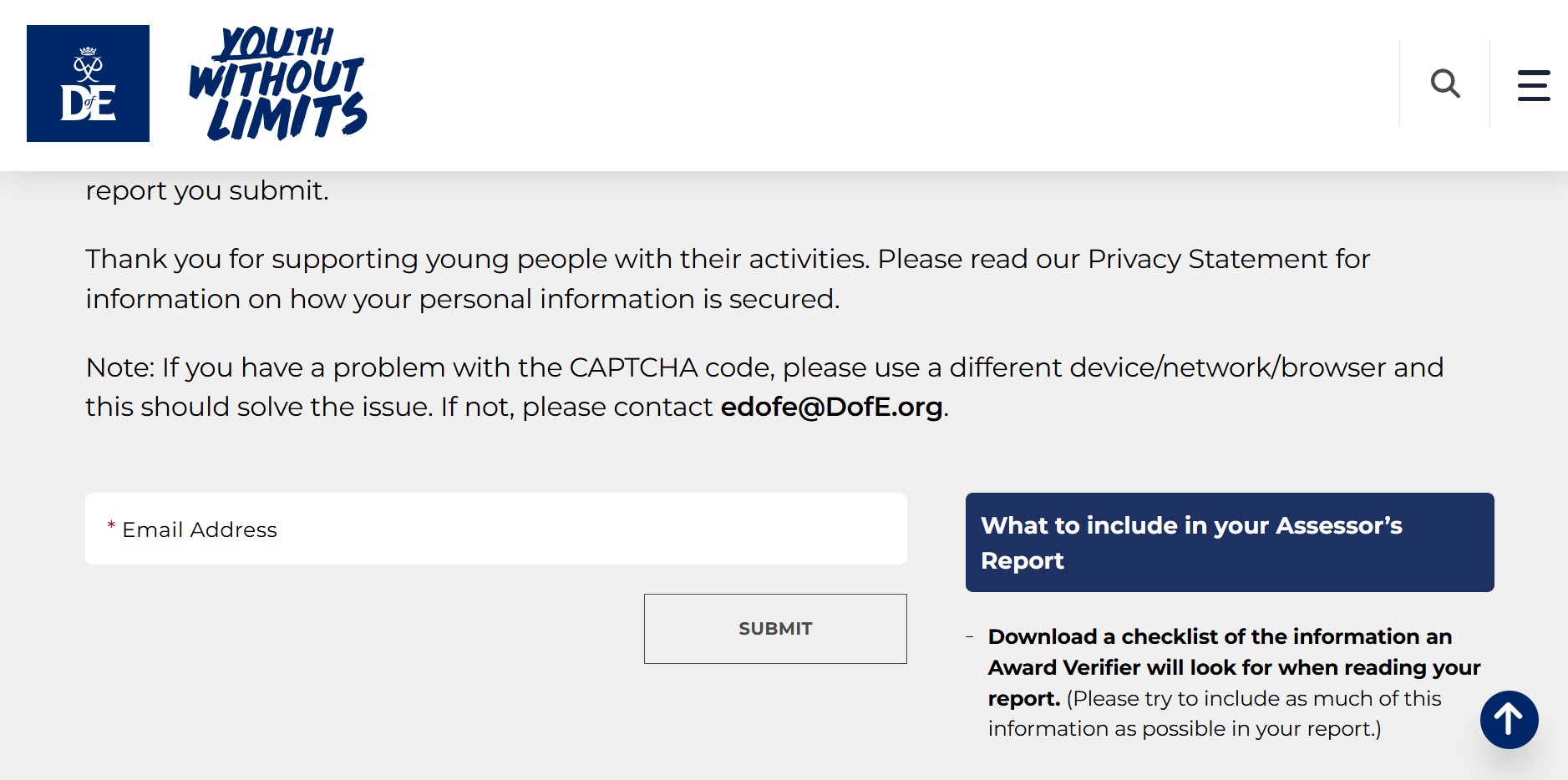 Your Assessor report needs to clearly show what activity you have been doing, over what time frame but also how frequently you have attended. It should also include some information on the progress you have made in reference to your original aims, along with the signature of your Assessor and the date the report was written. It is strongly recommended the Assessor includes an email address or contact number in case your Leader has any questions.